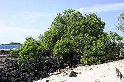 Large stretches of Heliotropium foertherianum shrub cover many of Caroline's islets.