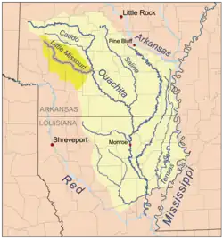 The Little Missouri River, or Little Mo, is a 147-mile-long (237 km)[2] waterway that runs from the Ouachita Mountains of southwest Arkansas into the rolling hills area in the surrounding countryside.
