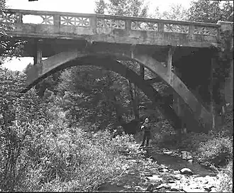 A prestressed box beam bridge was built over Little Pine Creek in Columbia County in 1998. It carries State Route 1026 and is 66.9 feet (20.4 m) long.[8] A masonry arch bridge was built over the creek in Luzerne County in 1927. It carries T-486 (Valley View Road) and is 21.0 feet (6.4 m) long.[9] A bridge in Fishing Creek Township was built over the creek in 1915.[10]