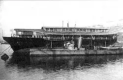 The Livadia was an imperial yacht of the House of Romanov built in 1879–1880 to replace a yacht of the same name that had sunk off the coast of Crimea in 1878. The new Livadia, intended for service on the Black Sea, was a radically novel ship conceived by Vice Admiral Andrey Popov, designed by naval architect Erast Gulyaev and built by John Elder & Co. of Govan on the Clyde. The Livadia continued Popov's line of circular ships although this time Popov sacrificed geometrical perfection for seagoing capabilities. She had a beam of 153 ft (47 m) against overall length of only 259 ft (79 m).[4] An extreme example of tumblehome architecture, she sported a conventionally shaped superstructure mounted on a wide, flat-bottomed, turbot-shaped submerged hull or pontoon.