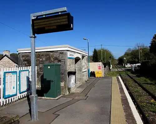 Llandybie railway station serves the village of Llandybie near Ammanford, Carmarthenshire. The railway station is located below street level just off Kings Road. This is a convenient stop for Glynhir Estate and Glynhir Falls. Two miles (3 km) from the station is the Llandybie 18-hole golf course.