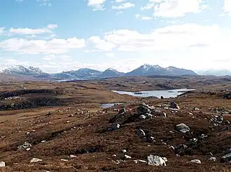 ![]() Loch Mhic' Ille Riabhaich from Carn Bad na h-Achlaise With a glimpse of Fionn Loch in the distance and its surrounding heights. | |