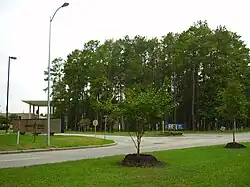 The LSC-North Harris campus is situated on 254 acres (1 km²) of land originally owned by Aldine ISD, located just several hundred feet from Aldine's Nimitz High School. It is about 20 miles (32 km) north of Downtown Houston.[12]