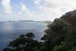The lagoon is six kilometres long and 1.5 km wide and contains the largest of Lord Howe Island's coral reef system, assessed as having World Heritage values.[10] The main identified threats to the marine environment are the impact of water quality welling up in the lagoon from groundwater, the potential changes of turbidity affecting the clarity of water in the lagoon, the impact from anchor damage (outside as well as inside the lagoon), overfishing particularly of the slower growing fish species which inhabit the drop-off, and dramatic water temperature changes causing coral bleaching and death of other marine species.[10]