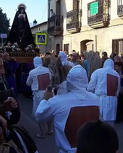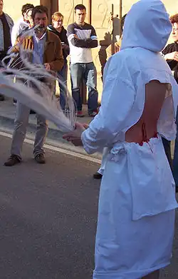 Los Picaos are public acts of penance of the Christian religion that occur in the town of San Vicente de la Sonsierra in La Rioja (Spain).[1] In Christian processions and Stations of the Cross, members of the Cofradía de la Santa Vera Cruz de San Vicente, a Christian confraternity of penitents, practice self-flagellation of the back by using a discipline as a voluntary act of faith; they are called disciplinantes.