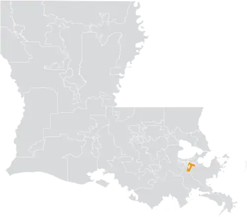 The district overlaps with Louisiana's 1st and 2nd congressional districts, and with the 85th, 87th, 102nd, and 105th districts of the Louisiana House of Representatives.[5]