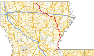 Louisiana Highway 15 (LA 15) is a state highway located in central and northern Louisiana. It runs 194.10 miles (312.37 km) in a north–south direction from the junction of LA 1 and LA 970 in Lettsworth to the concurrent U.S. Highways 63 and 167 in Lillie. The middle portion of the route, extending 56 miles (90 km) from Ferriday to just north of Mangham, is co-signed with US 425 and is a major four-lane highway through the area.