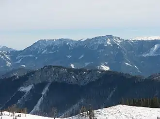 The Mürzsteg Alps or Mürztal Alps (German: Mürztaler or Mürzsteger Alpen) are a mountain range in the Eastern Alps (Northern Limestone Alps), which lie in the Austrian state of Styria, with a small part of the range in Lower Austria. The highest peak is the Hohe Veitsch (1,981 m above sea level (AA))[1] in the centre of the group, while largest massif is the Schneealpe (1,903 m above sea level (AA))[2] in the northwest, near the Rax.