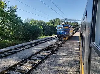 The Rijeka–Šapjane−State border railway, officially designated the M203 railway is a 30.9-kilometre (19.2 mi) long, single-tracked railway line in Croatia, which is operated by HŽ Infrastruktura.[1] M203 connects Rijeka to the Slovene railway network north of Šapjane and to the Zagreb via M202 east of Rijeka.[maps 1] It is electrified with 25 kV AC from Rijeka to Šapjane and 3 kV DC from Šapjane to the national border. Until 2014, it was classified as M502.[2]