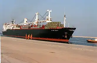 - ^ Department of Defense. "A tug boat positions the vehicle cargo ship CPL. LOUIS J. HAUGE, JR. (T-AK-3000). The HAUGE, along with other maritime prepositioning ships, is scheduled to transport equipment that will be used in Operation Desert Shield". U.S. National Archives.