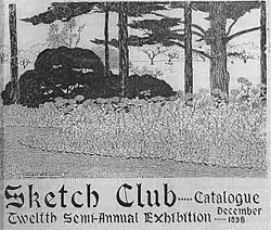 Born in Cincinnati and raised in New Orleans, she moved with her parents to San Francisco in the late 1880s.[2] There, she studied with Arthur Mathews at the Mark Hopkins Institute.[4][5] Early in 1899, a critic for a local weekly magazine called The Wave said her portraits were the best ones in the show, "being handled with a degree of delicacy and feeling characteristic of the true colorist."[6] Later that year, she joined and became a director of the San Francisco Sketch Club.[7] In 1898, she drew the illustration for the cover of the club's exhibition catalog, shown here, Image No. 1. Two years later, she received a commission for a portrait from a monthly review called The Critic.[8] At about the same time, still living with her parents, she moved to Manhattan, and there a publisher commissioned her to make illustrations for a book about animals in the western United States. Her thirteen drawings included a frontispiece of deer, shown here, Image No. 2. A critic called the pictures "delightful", adding that they would appeal to readers old and young.[9]