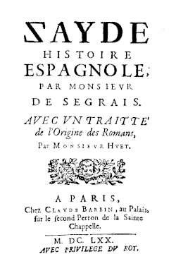 Settling permanently in Paris in 1659, La Fayette published, anonymously, La Princesse de Montpensier in 1662. From 1665 onwards she formed a close relationship with François de La Rochefoucauld, author of Maximes,[1] who introduced her to many literary luminaries of the time, including Racine and Boileau. 1669 saw the publication of the first volume of Zaïde, a Hispano-Moorish romance which was signed by Segrais but is almost certainly attributable to La Fayette.[1] The second volume appeared in 1671. The title ran through reprints and translations mostly thanks to the preface Huet had offered.