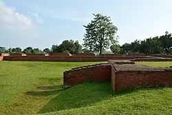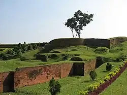 Mahasthangarh dates back to at least 3rd century BC and is acknowledged as the earliest city-site discovered thus far in Bangladesh. Somapura Mahavihara at Paharpur in Naogaon District was once the biggest Buddhist monastery south of the Himalayas. It dates from the 8th century AD. Mainamati ruins in Comilla District date back to 6th–13th centuries AD.[8] In neighbouring West Bengal, the ruins of Dihar at Bishnupur subdivision of Bankura district date back to the 2700 BC. The ruins of Pandu Rajar Dhibi on the banks of the Ajay River in Bardhaman district also date back to 2000 BC. However, this recent archaeological discovery has not yet been properly studied by outside experts and specialists in this field, and as such the historical value of many of the statements must be considered as uncertain.[18] The ruins at Chandraketugarh in 24 Parganas South and Rajbadidanga in Murshidabad district date back to the early years of the Christian era.[19]