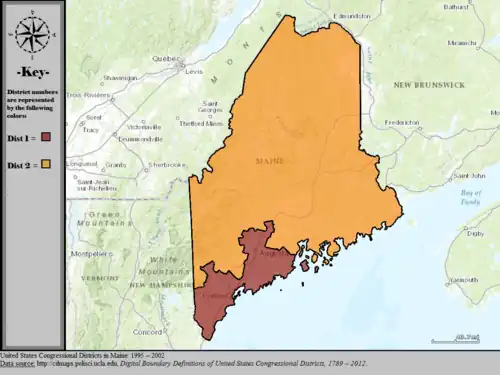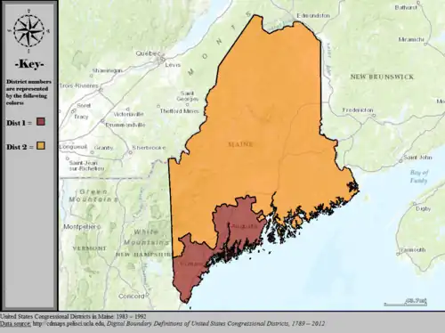 Table of United States congressional district boundary maps in the State of Maine, presented chronologically.[4] All redistricting events that took place in Maine between 1973 and 2013 are shown.