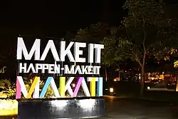 Ayala Triangle with the city's new slogan - "Make it Happen, Make it Makati"