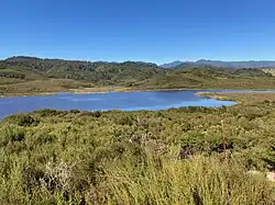 There are three lakes within the wetland: Lake Mangarakau, Big Pond, and Little Pond.[6] Lake Mangarakau is the largest, covering just over 14 hectares (35 acres).[7]