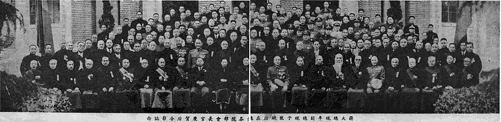 Mao Zuquan's last photo, taken in 1948 with President Chiang Kai-shek and Vice-President Li Zongren near the center of the first row. Mao is first from the left, in the first row. This was a commemorative group photo with officials from various ministries and departments after inauguration celebrations.