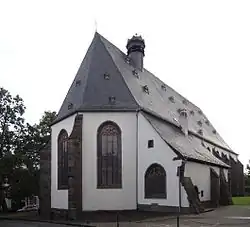 A parish is attested in Lich in the year 1239, which presupposes a church existed by that date.[3] In 1316, the Marienstift was founded by Philip III of Falkenstein, as a collegiate church (German: Kollegiatstift) with ten canons, which was intended to educate young men for the priesthood. Three neighbouring churches were incorporated along with Lich.[4] A large amount of property of the surrounding churches and districts was donated for the maintenance of the college. In the year of the college's foundation, a new, stone church was begun which was roughly two-thirds the size of the present building. The hall church, with a long choir and rood screen was consecrated to Mary on 7 May 1320.[1] It survived less than two hundred years. In 1510 it was entirely demolished to make way for the construction of the present building on the same site. Only a few sections of wall in the west wall survive.[3]