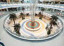 Geographically located in one of the city’s most prominent districts, it comprises 122,000 m2 of retail space featuring a unique selection of fashion, leisure and entertainment brands arranged over four levels, in addition to a 100 metre observatory, a bowling alley, a multiplex movie complex, musical fountains and a Carrefour departmental store.[4] The internal steam fountain is adorned with handcrafted glass mosaic art designed and produced by MEC Artworks.[5]
