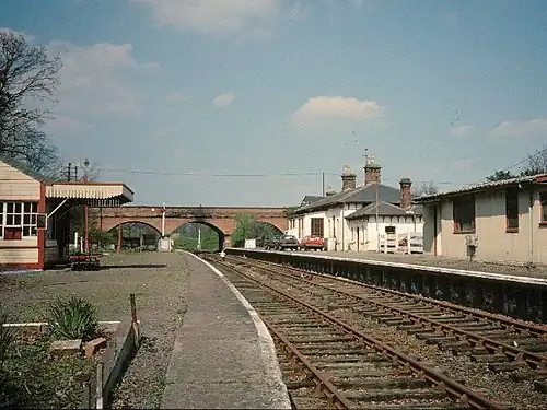 Market Bosworth railway station is a heritage railway station serving the town of Market Bosworth in Leicestershire, England. It was originally opened on the London and North Western Railway and the Midland Railway, who jointly operated the line between Moira West Junction and Nuneaton as the Ashby and Nuneaton Joint Railway. The station was designed by the Midland Railway company architect John Holloway Sanders.[1]