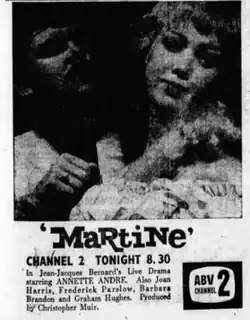 5. ^ "Television Production of Martine". Sydney Morning Herald. 28 December 1961. p. 4.