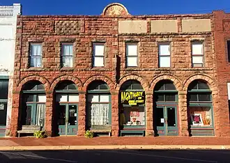 The Mascho Building and Public Privy is a historic building in Chandler, Oklahoma. It was designed in the Richardsonian Romanesque style, and built in 1897 with rusticated sandstone.[2] The first owner was A. E. Mascho, who used it as a grocery store until 1913, when it was purchased by grocer John Franklin Murphy and his wife Ella.[2] The building has been listed on the National Register of Historic Places since April 5, 1984.[1]