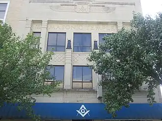 The Masonic Temple of El Dorado, Arkansas is located at 106-108 North Washington Street, on the west side of the courthouse square. The four-story masonry building was built in 1923–24 to a design by Little Rock architect Charles S. Watts. It is one of a small number of buildings in Arkansas with Art Deco styling influenced by the Egyptian Revival. This particular styling was likely influence by the 1922 discovery of the Tomb of Tutankhamun.[2]