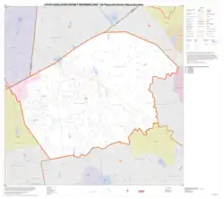 The current district geographic boundary overlaps with those of the Massachusetts Senate's Norfolk and Plymouth district, 2nd Plymouth and Bristol district, and Plymouth and Norfolk district.[5]