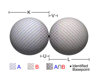 Let X be the wedge sum of two spaces K and L, and suppose furthermore that the identified basepoint is a deformation retract of open neighborhoods U ⊆ K and V ⊆ L. Letting A = K ∪ V and B = U ∪ L it follows that A ∪ B = X and A ∩ B = U ∪ V, which is contractible by construction. The reduced version of the sequence then yields (by exactness)[17]