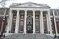 Richardson retired in 1921 after a disabling accident and Fenner died in 1926. Teunis Jacob van der Bent (1862 – 1936), a partner since 1909, took over Fenner's management role and died a decade later. Kendall gradually withdrew from the firm during the 1930s and died in 1941, leaving control of the firm with White and Smith.[27] The firm's design efforts after World War II may be summed up by the Mead Art Building (1949) of Amherst College, a memorial to Mead. Mead and his wife had left a large sum of money to Amherst, his alma mater, for the construction of an art gallery.[28][29] The new building was assigned to Smith, who was college architect and another alumnus. According to Blair Kamin, at this point Smith and his firm "were struggling with the challenge[s] posed by...modernism," resulting in a building which attempts gamely to meld Beaux-Arts and modernist principles but fails at both.[30] Shortly before White's death in 1956, he won for the firm the National Museum of American History (1964) in Washington, DC. His grandson, architect Samuel White, described the commission as "[h]is personal Mount Everest."[31] The museum, among the final works initiated under the name McKim, Mead & White, was designed principally by Smith and Walker O. Cain. Here as at Amherst they attempted to meld traditionalism and modernism with little success. Martin Moeller, then curator of the National Building Museum, described it as "neither convincingly modern nor credibly neoclassical."[32]