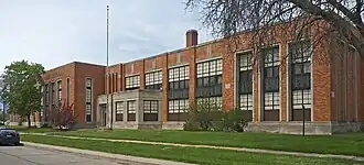 The school district hired architect Carl R. Jensen of Detroit to design the building, and the O.W. Burke Company to construct it. The school opened in March 1940. The school continued in use until 2009, when declining enrollment led the school board to close it. As of 2017, the building is being rehabilitated for housing.[2] Coachlight Properties LLC and Jonesboro Investment Corp. will redevelop the building into 60 market-rate senior apartments.[3]