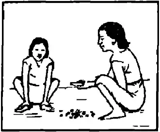 Plaything items of Khullokpi (ꯈꯨꯜꯂꯣꯛꯄꯤ) are usually small, durable objects like pebbles, brick fragments, or seeds. Players place these objects on the dorsal side of their palm, throw them upwards, and then quickly turn their palm upwards to catch as many falling objects as possible before they hit the ground. The objects that are caught are used in the next round, and the process continues until all objects are used.[2]