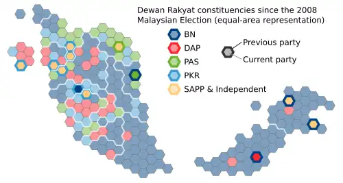 - ^ Bumburing was elected as a Barisan Nasional MP but in July 2012 joined the Pakatan Rakyat opposition as an independent.