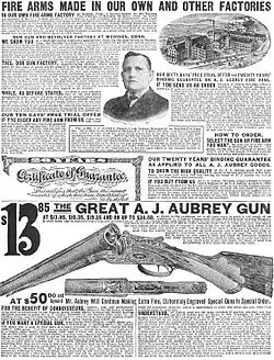 In 1906 Albert James Aubrey, former plant superintendent for Wilkes-Barre Gun Co. and the designer of Aubrey shotguns, became the vice president of Meriden Firearms for Sears. Two years later he became president of the division, a position he held until 1916.[4] During his time at Sears, Aubrey filed for and received 8 patents related to firearms.[5]