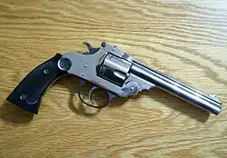 Meriden manufactured double-action top-break revolvers in various barrel lengths and finishes. Calibers were either .32 S&W or .38 S&W with either an exposed or enclosed hammer. The barrels were marked "Meriden Firearms Co. Meriden, Conn USA". These guns were referred to as "pocket pistols" and were made between 1905 and 1915.[3] Meriden manufactured twenty varieties of hammer and hammerless revolvers with an output of 100 guns a day in 1906.[1]