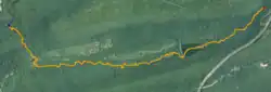 Satellite map of Messers Run. The red dot is the stream's source and blue dot is its mouth.