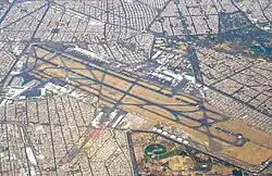 On December 2, 1963, the airport's name was changed from "Aeropuerto Central" (Central Airport) to "Aeropuerto Internacional de la Ciudad de México" (Mexico City International Airport).[16] In the 1970s, the two shortest runways (13/31 and 5 Auxiliary) were closed to facilitate the construction of a social housing complex in that area, named Unidad Fiviport.[17][18][19] This left the airport with its current two-runway layout. The Mexico City Area Control Center (ACC) began operating on November 24, 1978, and remains in service.[16][20]