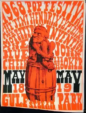 The Miami Pop Festival is the name by which a music festival that took place on May 18-19, 1968 in Hallandale, Florida, is sometimes known. The venue was Gulfstream Park, a horse racing track just north of Miami. The event, which was officially publicized on promotional materials and in radio ads as the "1968 Pop and Underground Festival," and "The 1968 Pop Festival," was promoted by Richard O'Barry, Marshall Brevetz and Michael Lang, the latter of whom became famous as one of the four promoters of Woodstock in 1969. Decades later, the May 1968 festival began to be referred to colloquially as the "Miami Pop Festival", leading to confusion with the actual Miami Pop Festival, which took place in December 1968.