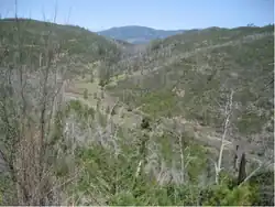 The Middle Creek watershed is a sub-watershed of the Clear Lake Basin. It is 99.5% contained in Lake County and 0.5% in Mendocino County. It includes the watersheds of Alley Creek and Clover Creek. It covers 50,155 acres (20,297 ha) (16.5%) of the Clear Lake Basin, and supplies 21% of the streamflow to Clear Lake.[6] Elevations in the watershed range from 4,840 feet (1,480 m) at High Glade Lookout in the north to about 1,349 feet (411 m) where Clover Creek joins Middle Creek. The east and west forks of the creek join at an elevation of about 1,480 feet (450 m). The Middle Creek and Clover Creek valleys combine to form a single valley north of the town of Upper Lake.[7][a]