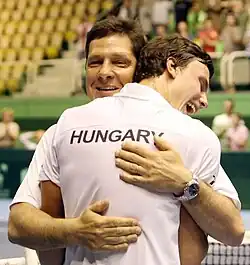 Between 1989 and 2013, Miklós Hornok worked first as head coach of Men's, then Women's later both (men's and women's) Hungarian National junior team.[5][6][7][8] During his tenure at Hungary Tennis Federation, he was available for private, semi-private and group lessons either. Meanwhile, he was appointed as the captain of the Hungary Davis Cup team from November 2010 to December 2014.[9][10][11][12][13][14] He stepped down due to family reason and moved to United States where he is currently leading his own Tennis Academy.[15][16] He regularly mentors and teaches aspiring tennis professionals throughout his career. In the past, he coached Ágnes Szávay,[17] Márton Fucsovics,[18][19] Anikó Kapros, Zsófia Gubacsi, Rita Kuti-Kis, Attila Sávolt, György Balázs, Attila Balázs, Réka Vidáts, Kyra Nagy, Kornél Bardóczky, Gergely Kisgyörgy, Katalin Marosi and Amir Hadad.[20]