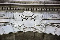 On top of the Hemicycle was a terrace 24 feet (7.3 m) wide. Originally, access to the terrace was granted only by going to the either end of the Hemicycle, through a pedestrian gate, and up some stairs. Above each arched entrance to the pedestrian stairs was a granite eagle. But these entrances were never opened and remained locked for more than 50 years.[39]