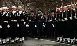 Escort platoons marching during the military funeral of Admiral Thomas Hinman Moorer in Arlington National Cemetery, 2004.