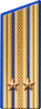 | Генера́л а́рмии | Генера́л-полко́вник | Генера́л-лейтена́нт | Генера́л-майо́р | Полко́вник | Подполко́вник | Майо́р | Kапита́н | Старший лейтена́нт | Лейтенант | Mла́дший лейтена́нт | Курсант | ||