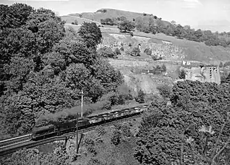 Millers Dale also sent dairy, agricultural and quarried products (mainly lime and limestone) from the surrounding areas to the major cities. While also serving local towns and villages (notably Tideswell, Taddington and Wormhill), much of its activity was concerned with the connecting service to and from Buxton. Traffic for Buxton actually followed the main line north for nearly two miles (3.2 km), before diverging at Millers Dale Junction, just east of Blackwell Mill Halt.[2]