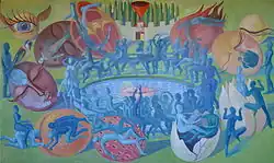 Miluše Poupětová (* born Kautznerová, July 22, 1963 in Vlašim) is a Czech artist. She also teaches students of applied art at VOŠUP SUPŠ (Industrial Art College and Secondary School) in Prague. Her paintings are based on expressionism and monumental painting, and include abstract as well as figural elements. Her paintings follow her individual path to her soul, she is inspired by the physical experience of her own femininity as well as by oriental, Christian and psychoanalytic philosophy. The initial dark and exalted expressiveness of her early art work was gradually changed by brighter colours, well-thought-out compositions, more harmony and a more detached point of view.