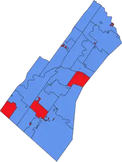 Winning party in each polling division of Mississauga—Lakeshore at the 2022 Ontario general election