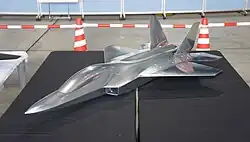 The 40 billion yen construction project in the Mitsubishi's Komaki South Plant began in 2009 under the supervision of the Acquisition, Technology & Logistics Agency (ATLA) of the Defense Ministry.[12][13] In July 2014, the TRDI (Technical Research & Development Institute) released the first official photos of the ATD-X prototype, and stated that the aircraft was undergoing ground testing. The fighter prototype was expected to be fully developed by 2018.[14] The ATD-X program will then lead to the Mitsubishi F-3, which should carry sixth-generation technology, and is expected to be produced in 2027.[15]