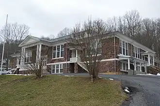 Monterey High School, also known as Highland High School, Monterey Elementary School, Highland Elementary School, and Highland Center, is a historic school building located at Monterey, Highland County, Virginia. It was built in 1922, and is a one-story, hipped roof garnet sandstone structure in the Classical Revival-style. The three-bay facade consists of two side classroom wings with the central entry portico. It has a multiple hipped roof, symmetrical facade, and portico supported by Doric order columns. The school closed in 1997, and subsequently housed the Highland Center.[3]
