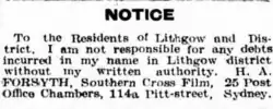 - ^ "Advertising". The Evening News. Sydney. 31 December 1910. p. 2. Retrieved 30 March 2015 – via National Library of Australia.