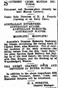- ^ a b "Moonlite in picture". The Evening News. Sydney. 31 December 1910. p. 7. Retrieved 4 October 2013 – via National Library of Australia.